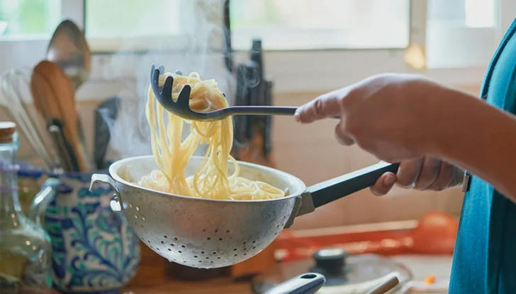 Correct Incorrect Un colador permite que el agua se escurra de la pasta cocida, verduras enjuagadas o frutas, manteniendo la comida lista para servir.