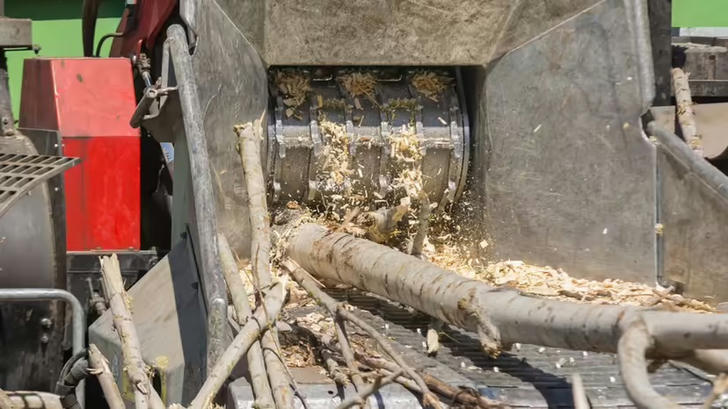 Correct Incorrect Cette machine transforme les petites branches en copeaux de bois utiles, parfaits pour le nettoyage après l'élagage des arbres.