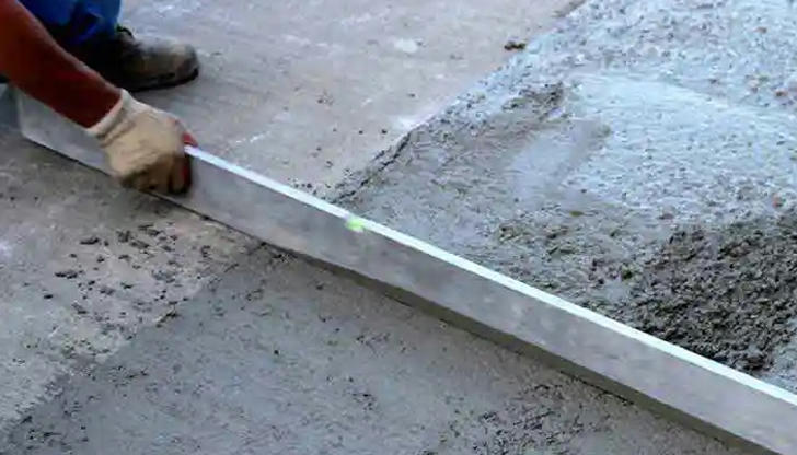 Correct Incorrect Uma régua é usada logo após o concreto ser despejado para nivelar e alisar a superfície de forma uniforme.